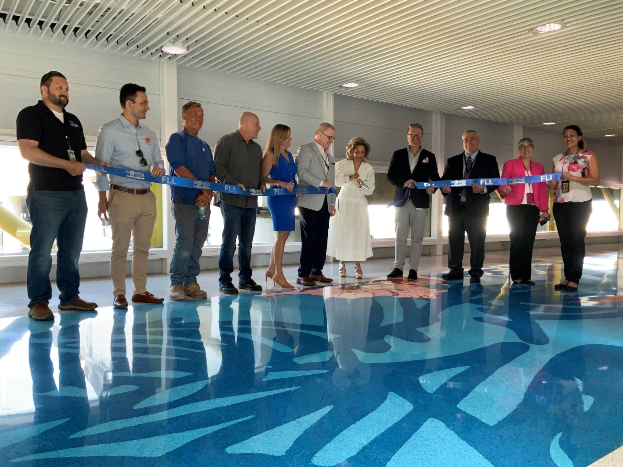 The Fort Lauderdale-Hollywood International Airport (FLL), in partnership with the Broward Cultural Division, unveiled a new terrazzo floor artwork in Terminal 1 on Wednesday, May 29, 2024. The artwork spans 1,578 square feet in the pedestrian bridge walkway connecting Terminal