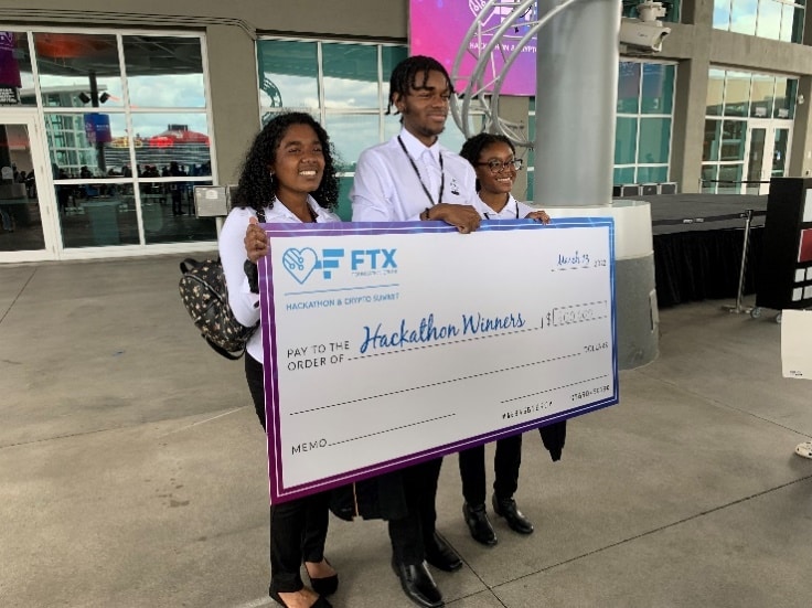 Three Broward County Public Schools (BCPS) students, competing as Team Eudai, won $500,000 to develop their business idea during the FTX Charity Hackathon! The trio tied for first place, sharing a $1 million grand prize with a team from Miami-Dade County.