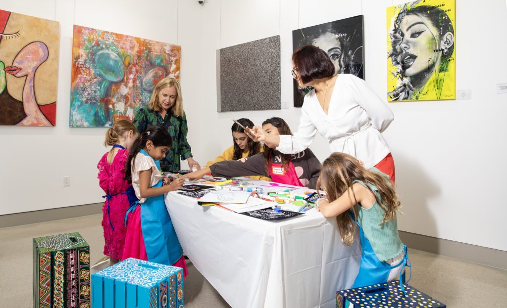 Then on Saturday, May 6th, 2023, the gallery hosted Young at HEART, a family-friendly program. Art stations were set up and participating artists Alejandra Stier, Victoria Lopez, Sandra De Souza, and Hiba Alyawer guided children through a variety of age-appropriate art projects. The final masterpieces will be on view at a special reception in the summer.