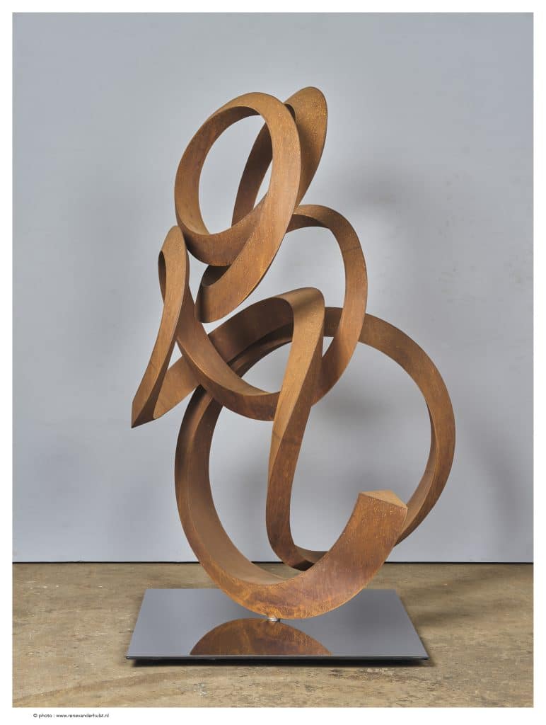 Dutch sculptor, Pieter Obels, works with Corten steel, yet his works convey light and grace as he bends the steel into extraordinarily delicate and winding shapes. Obels aim is to create totally organic forms with an extreme yet somehow innate sense of plasticity. This sense of a natural rhythm makes his sculptures sit with a total oneness in any natural surroundings. Obels’ sculpture, entitled “Expanding Gestures,” will be featured within the grounds of the Continuum in 2024.