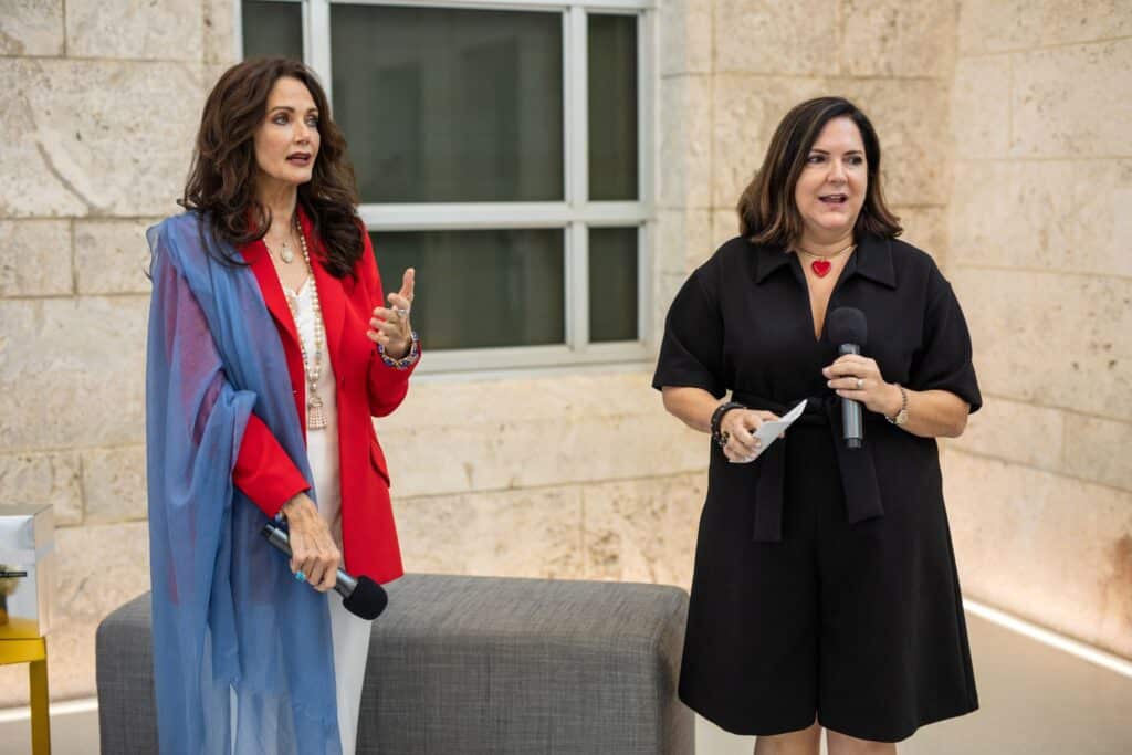 Lynda Carter, best known as the star of the live-action television series Wonder Woman, in the role of Diana Prince/Wonder Woman celebrated National Wonder Woman Day and the 80th anniversary of the iconic DC-comic book character’s creation at The Bass Museum with an unveiling of Dara Birnbaum’s film- Technology/Transformation: Wonder Woman 1978-79 – the newest edition to the museums art collection. Following the film viewing, the special event also included an intimate luncheon sponsored by BABOR, where guests sipped on Whispering Angel Rosé and enjoyed an interactive conversation and interview with Carter herself, led by The Bass Museum’s Executive Director, Silvia Karman Cubiñá.