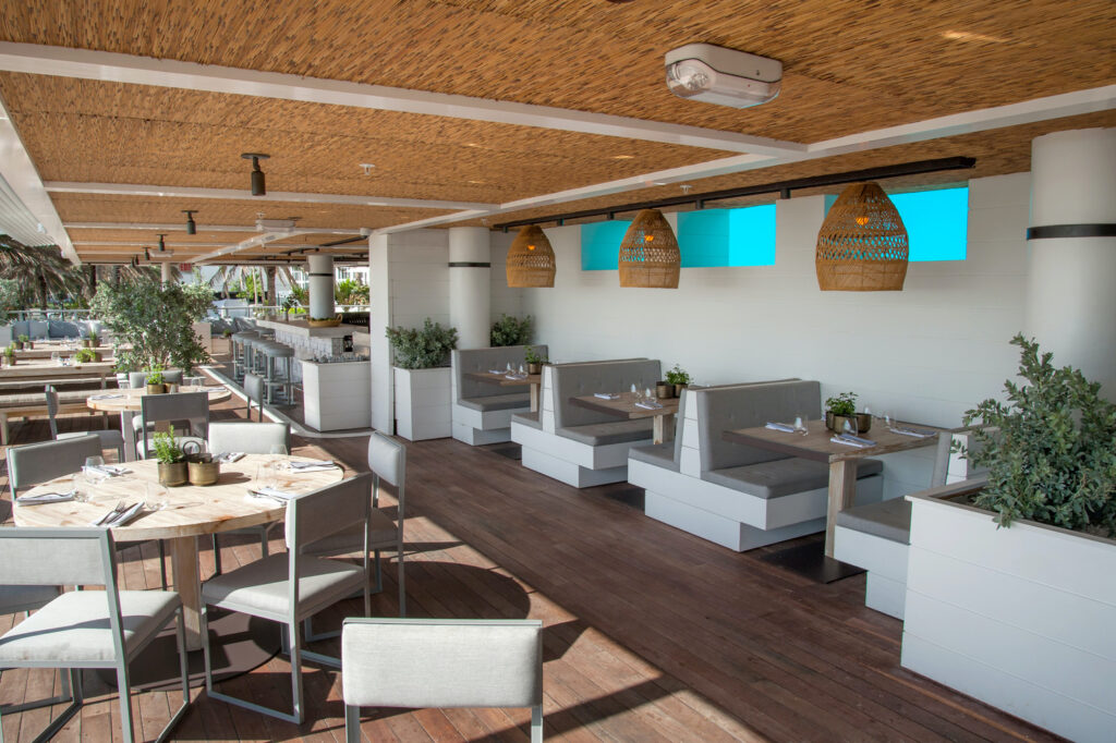 The restaurant itself features comfortable neutral tone furniture that extends the feeling of the sand onto the terrace – with banquettes and oceanfront tables in an unfussy, but elegant setting. A retractable roof makes outdoor dining possible regardless of the weather or time of day; as do the refreshing ocean breezes.
